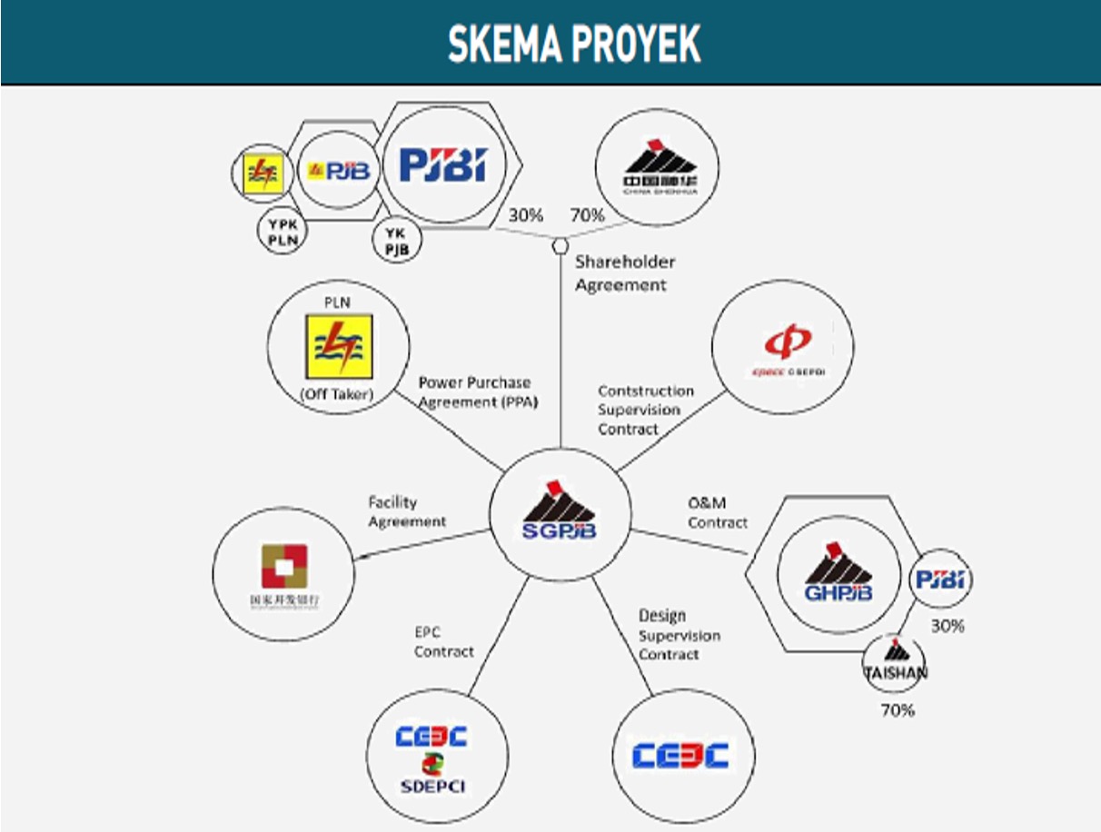 Pembangkit dibangun dengan skema membentuk JVC IPP yaitu PT Shenhua Guohua Pembangkitan Jawa Bali (PT SGPJB) yang merupakan konsorsium antara China Shenhua Energy Company Limited (CSECL) dan PJBI yang didirikan pada 13 Januari 2016. Kepemilikan saham CSECL mencapai 70 persen dan 30 persen saham dimiliki PJBI.